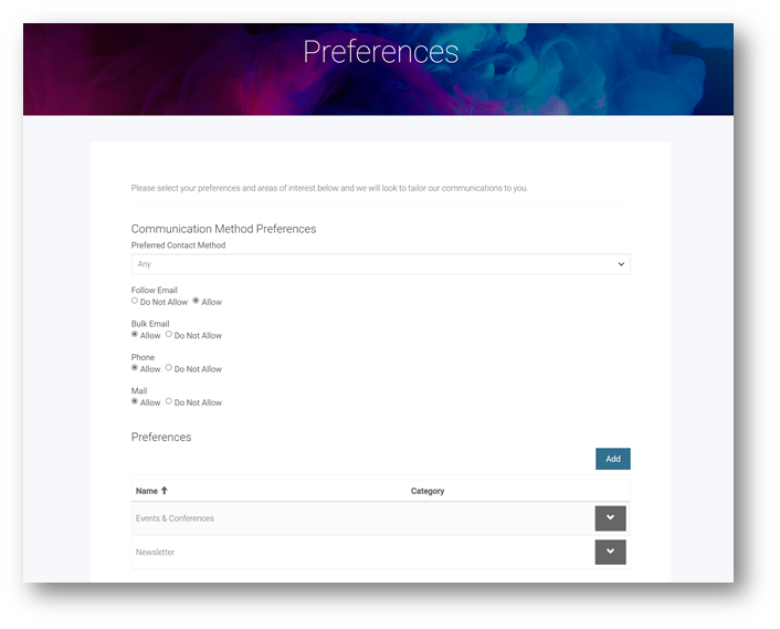 As well as changing personal details, the Subscribe360 portal allows a member to set or change their own preferences; this includes the GDPR ones (such as do or don't phone/email/bulk email me) and other membership related ones, such as newsletter content preferences.